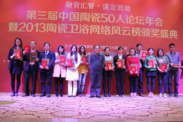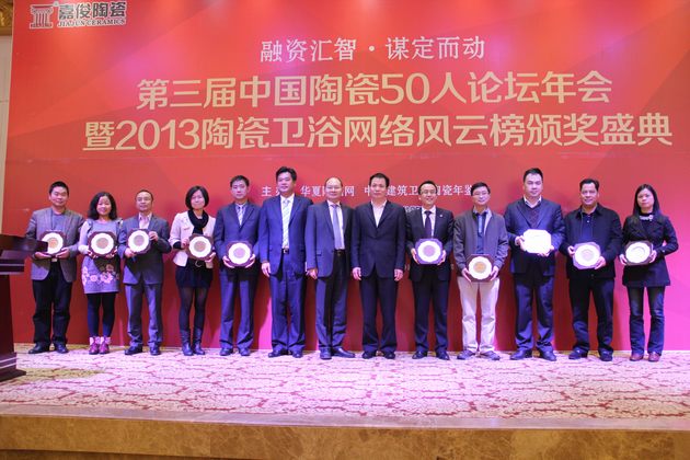 1月6日,,,由中原陶瓷网、中国修建卫生陶瓷年鉴、中原银行佛山分行联合主理的“第三届中国陶瓷50人论坛年会暨2013陶瓷卫浴网络风云榜颁奖晚宴”在佛山南庄桃园一品宴会大厅举行。。。